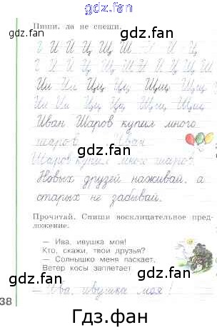 Проверка домашнего задания всегда занимает большое количество времени. На помощь приходит ГДЗ фан по Русскому языку первого класса. Здесь собраны популярные ответы на стр. 38 Русский язык 1 класс рабочая тетрадь Пиши красиво Климанова Л.Ф.