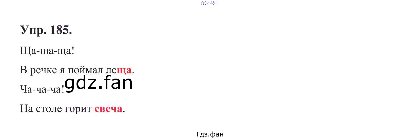 Проверка домашнего задания всегда занимает большое количество времени. На помощь приходит ГДЗ фан по Русскому языку первого класса. Здесь собраны популярные ответы на 185 (стр. 95) Русский язык 1 класс Климанова Л.Ф.