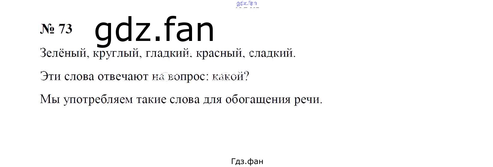 Проверка домашнего задания всегда занимает большое количество времени. На помощь приходит ГДЗ фан по Русскому языку первого класса. Здесь собраны популярные ответы на 73 (стр. 54) Русский язык 1 класс рабочая тетрадь Рамзаева Т.Г.