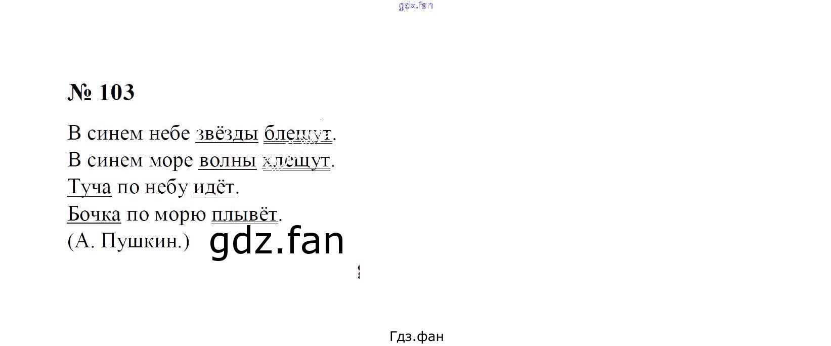 Проверка домашнего задания всегда занимает большое количество времени. На помощь приходит ГДЗ фан по Русскому языку первого класса. Здесь собраны популярные ответы на 103 (стр. 58) Русский язык 1 класс Рамзаева Т.Г.