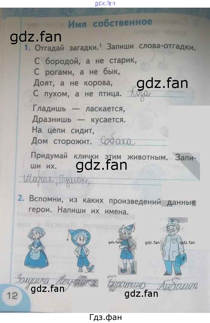 Проверка домашнего задания всегда занимает большое количество времени. На помощь приходит ГДЗ фан по Русскому языку первого класса. Здесь собраны популярные ответы на 12 (Имя собственное № 1, 2) Русский язык 1 класс рабочая тетрадь Тихомирова Е.М.(к уч. Климановой)