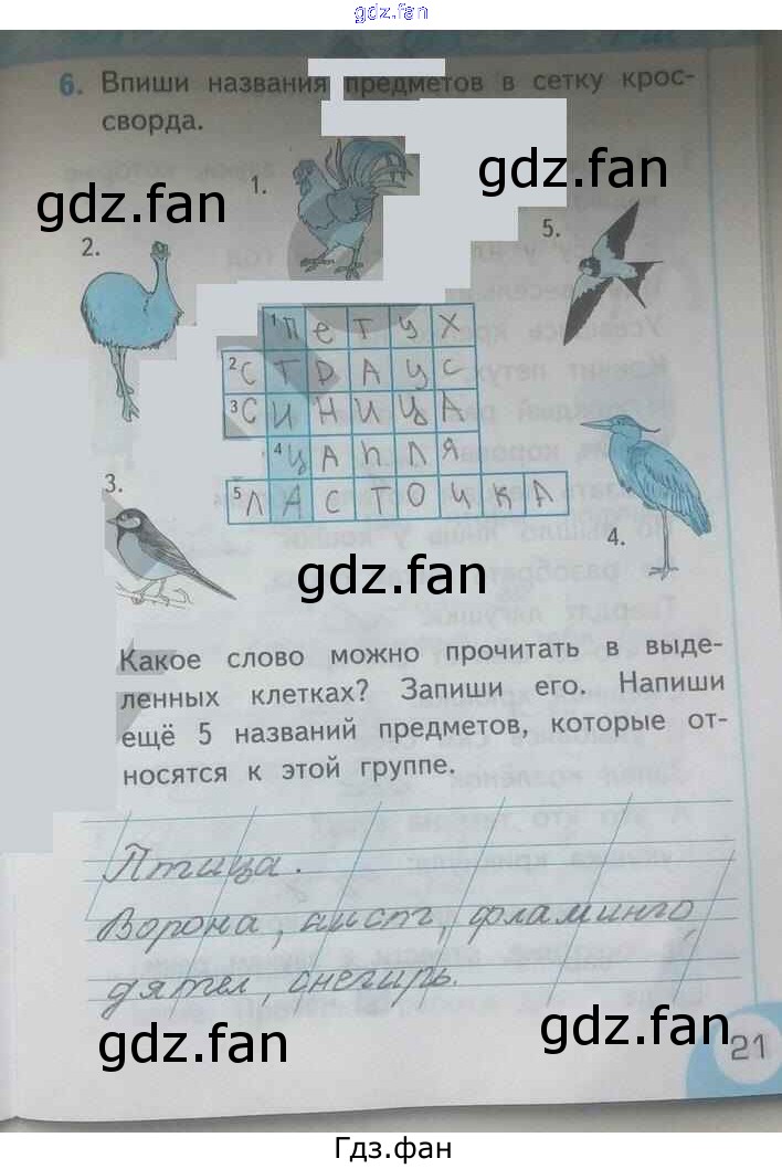 Проверка домашнего задания всегда занимает большое количество времени. На помощь приходит ГДЗ фан по Русскому языку первого класса. Здесь собраны популярные ответы на 21 (№ 6) Русский язык 1 класс рабочая тетрадь Тихомирова Е.М.(к уч. Климановой)
