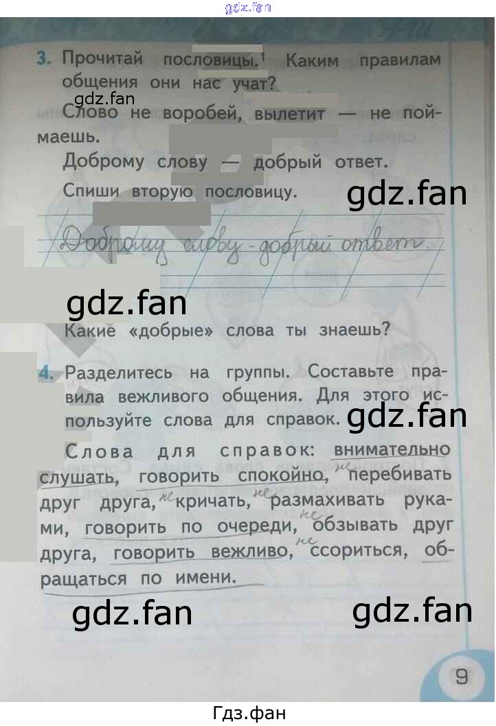 Проверка домашнего задания всегда занимает большое количество времени. На помощь приходит ГДЗ фан по Русскому языку первого класса. Здесь собраны популярные ответы на 9 (№ 3, 4) Русский язык 1 класс рабочая тетрадь Тихомирова Е.М.(к уч. Климановой)