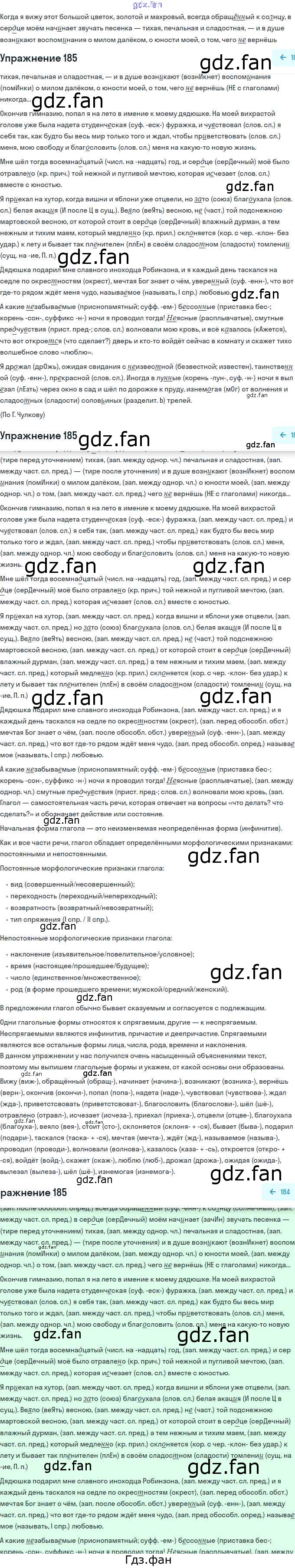 Проверка домашнего задания всегда занимает большое количество времени. На помощь приходит ГДЗ фан по Русскому языку одиннадцатого класса. Здесь собраны популярные ответы на 185 (стр. 289) Русский язык 11 класс Гусарова И.В.