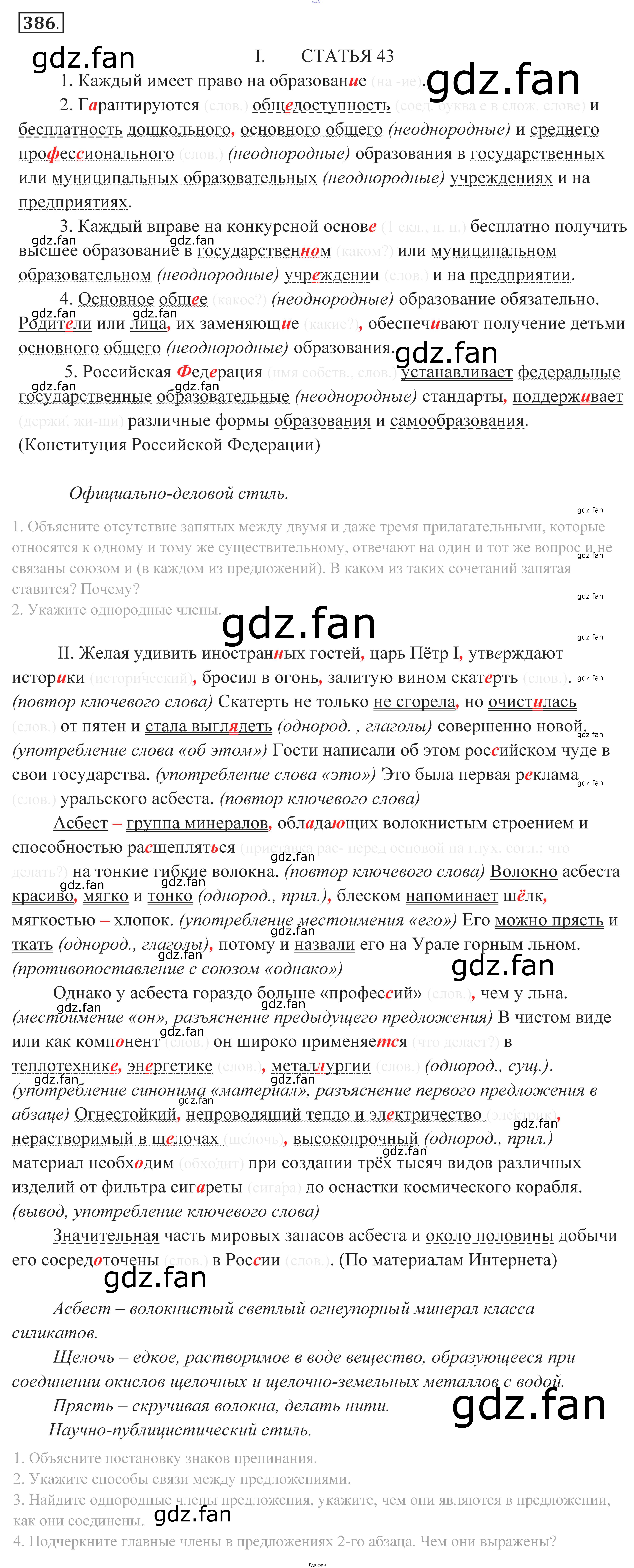 Проверка домашнего задания всегда занимает большое количество времени. На помощь приходит ГДЗ фан по Русскому языку десятого класса. Здесь собраны популярные ответы на 386 (стр. 262) Русский язык 10-11 класс Власенков А.И.