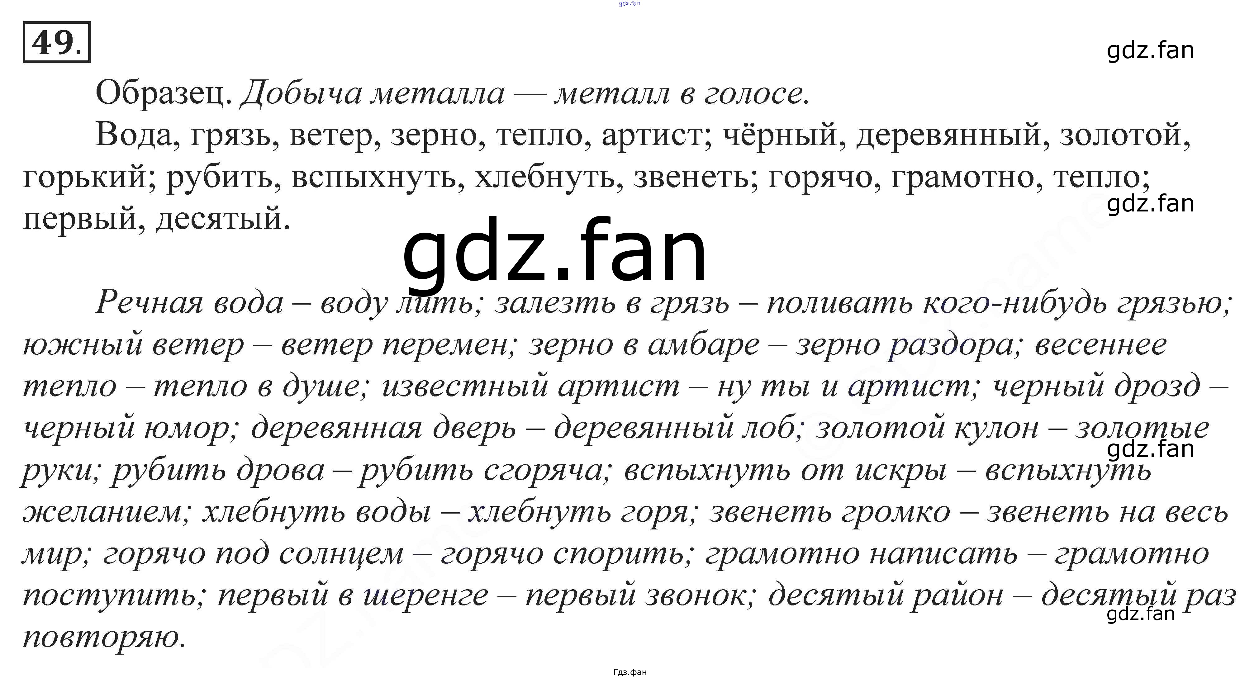 Проверка домашнего задания всегда занимает большое количество времени. На помощь приходит ГДЗ фан по Русскому языку десятого класса. Здесь собраны популярные ответы на 49 (стр. 50) Русский язык 10-11 класс Власенков А.И.