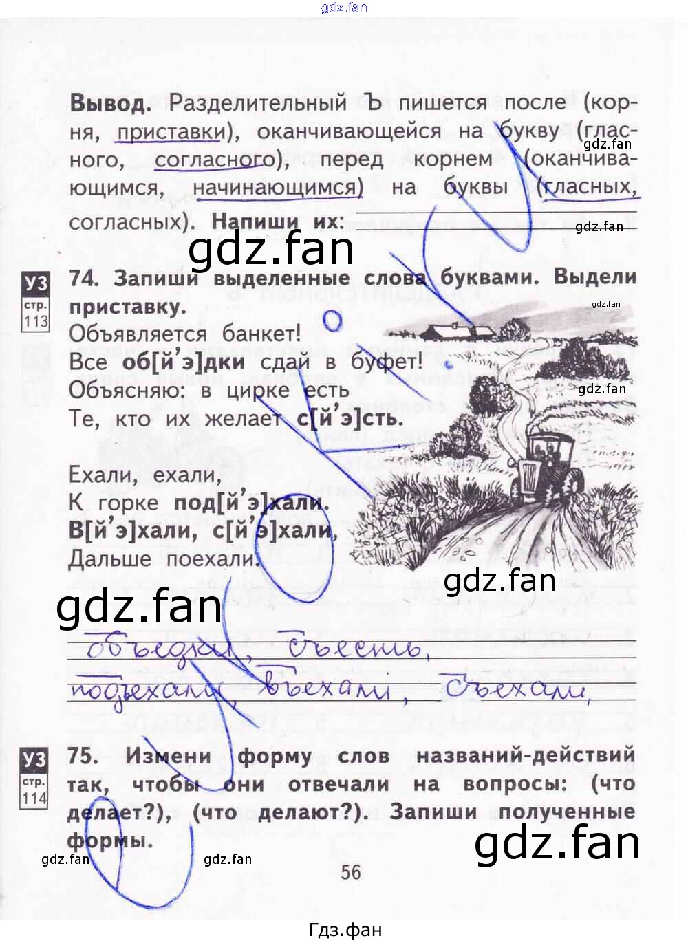 Проверка домашнего задания всегда занимает большое количество времени. На помощь приходит ГДЗ фан по Русскому языку второго класса. Здесь собраны популярные ответы на 56 (упражнения 74, 75) Русский язык 2 класс тетрадь для самостоятельной работы Байкова Т.А.