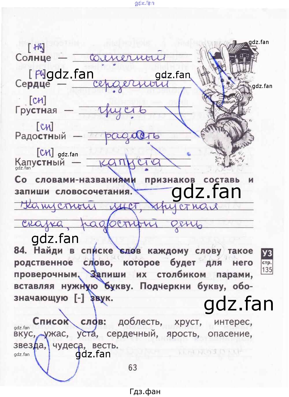 Проверка домашнего задания всегда занимает большое количество времени. На помощь приходит ГДЗ фан по Русскому языку второго класса. Здесь собраны популярные ответы на 63 (упражнения 84) Русский язык 2 класс тетрадь для самостоятельной работы Байкова Т.А.