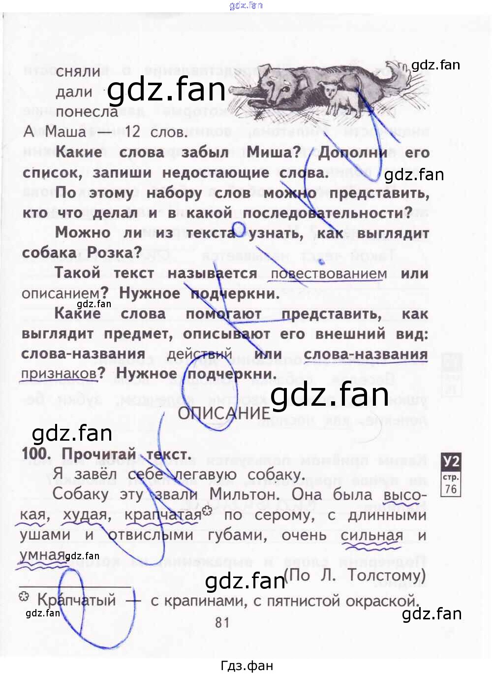 Проверка домашнего задания всегда занимает большое количество времени. На помощь приходит ГДЗ фан по Русскому языку второго класса. Здесь собраны популярные ответы на 81 (упражнения 100) Русский язык 2 класс тетрадь для самостоятельной работы Байкова Т.А.