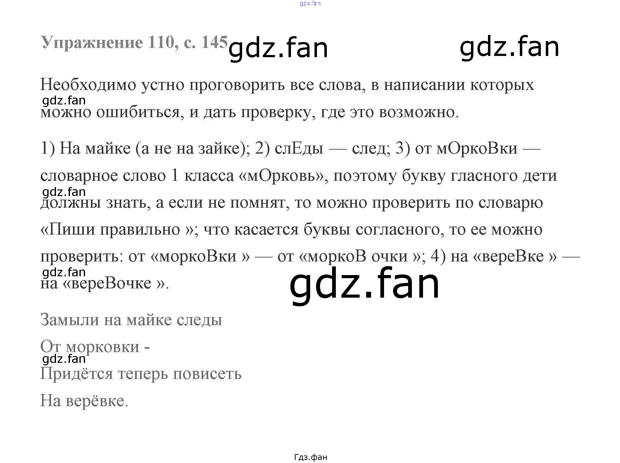 Проверка домашнего задания всегда занимает большое количество времени. На помощь приходит ГДЗ фан по Русскому языку второго класса. Здесь собраны популярные ответы на 110 (стр. 145) Русский язык 2 класс Чуракова