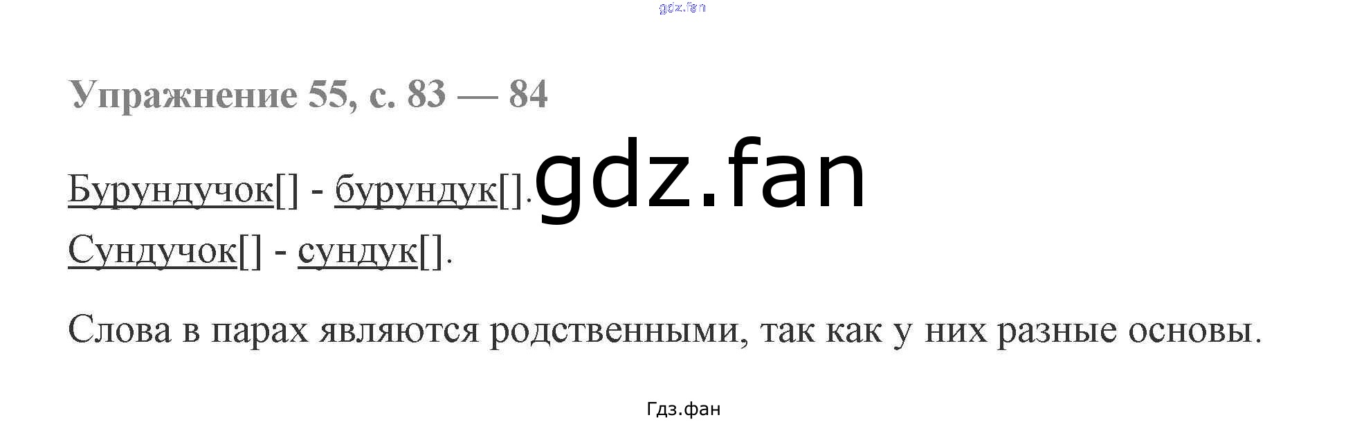 Проверка домашнего задания всегда занимает большое количество времени. На помощь приходит ГДЗ фан по Русскому языку второго класса. Здесь собраны популярные ответы на 55 (стр. 83) Русский язык 2 класс Чуракова