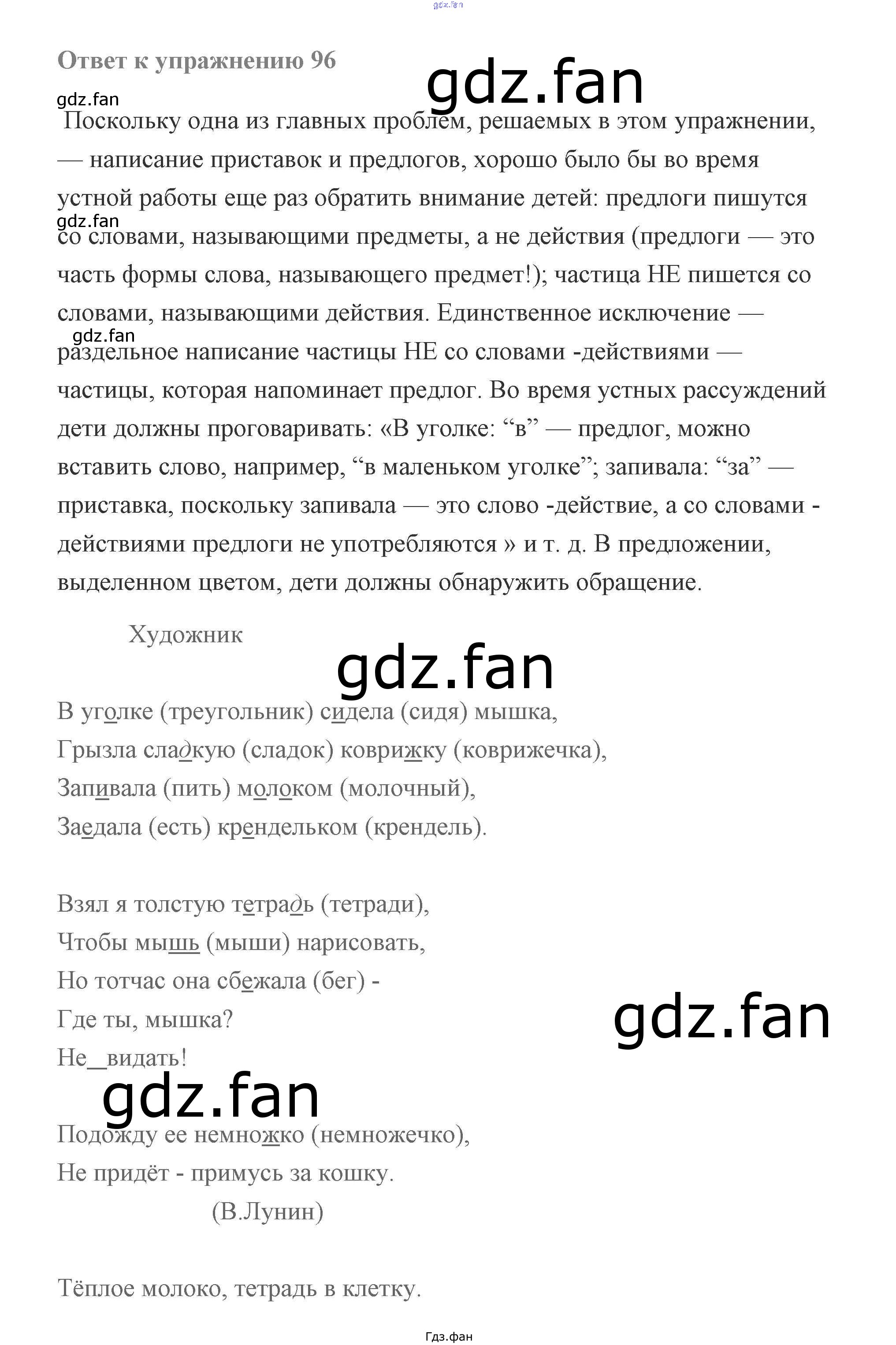 Проверка домашнего задания всегда занимает большое количество времени. На помощь приходит ГДЗ фан по Русскому языку второго класса. Здесь собраны популярные ответы на 96 (стр. 85) Русский язык 2 класс Чуракова