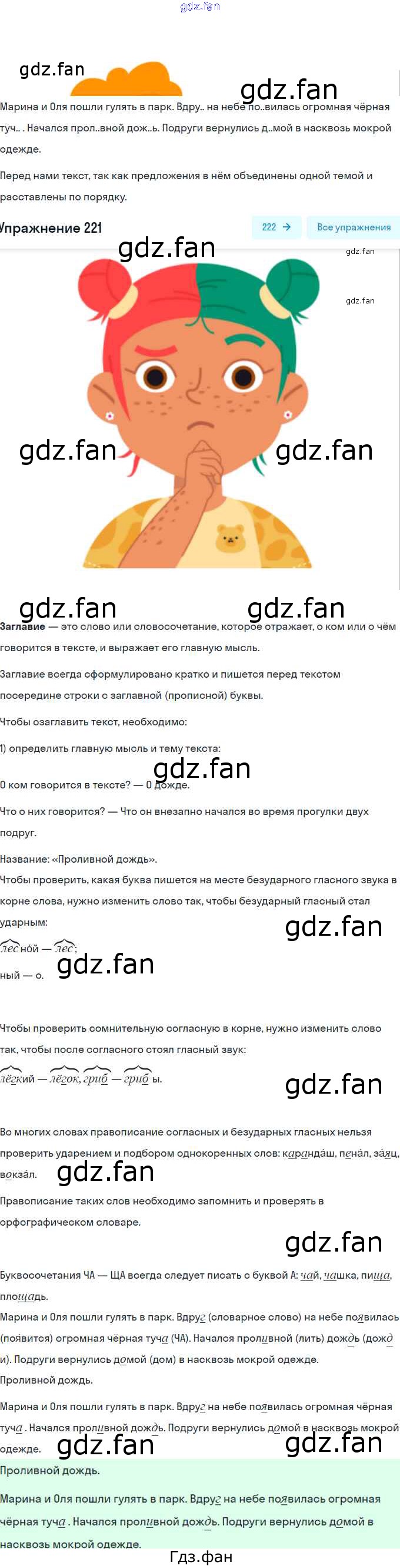 Проверка домашнего задания всегда занимает большое количество времени. На помощь приходит ГДЗ фан по Русскому языку второго класса. Здесь собраны популярные ответы на 221 (стр. 136) Русский язык 2 класс Климанова