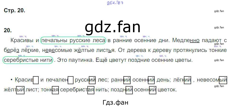 Проверка домашнего задания всегда занимает большое количество времени. На помощь приходит ГДЗ фан по Русскому языку второго класса. Здесь собраны популярные ответы на 20 (№ 20) Русский язык 2 класс рабочая тетрадь Песняева Н.А.