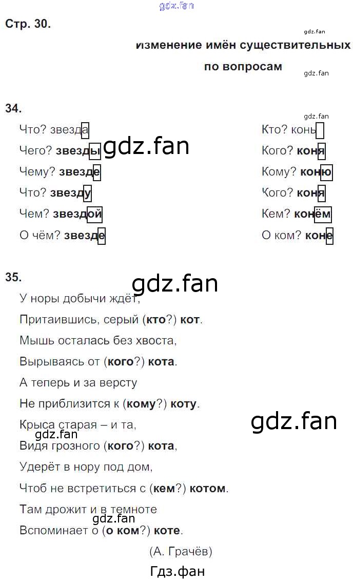Проверка домашнего задания всегда занимает большое количество времени. На помощь приходит ГДЗ фан по Русскому языку второго класса. Здесь собраны популярные ответы на 30 (№ 34, 35) Русский язык 2 класс рабочая тетрадь Песняева Н.А.