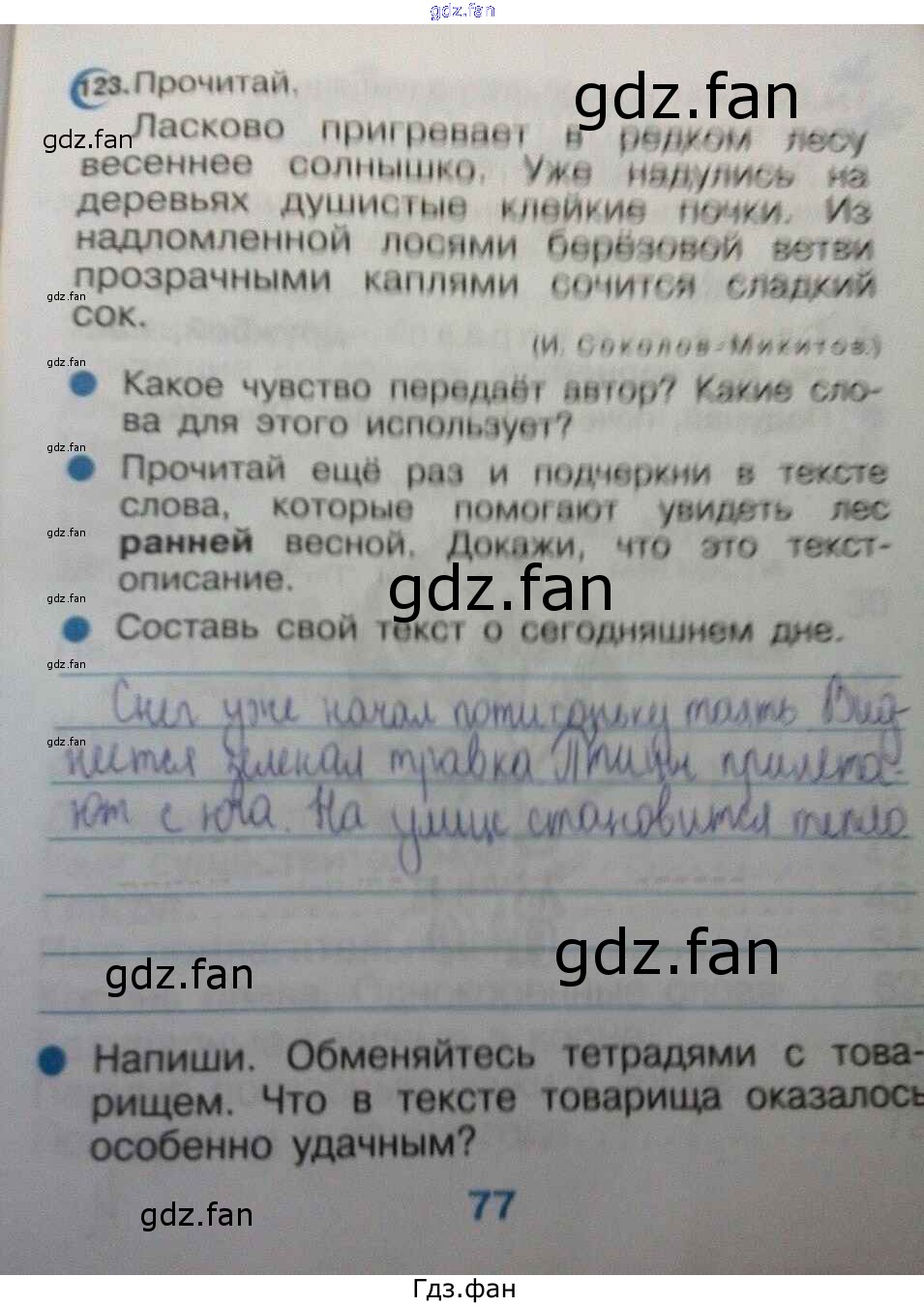 Проверка домашнего задания всегда занимает большое количество времени. На помощь приходит ГДЗ фан по Русскому языку второго класса. Здесь собраны популярные ответы на 77 (№ 123) Русский язык 2 класс Тетрадь для упражнений Рамзаева Т.Г.