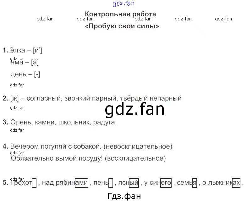 Проверка домашнего задания всегда занимает большое количество времени. На помощь приходит ГДЗ фан по Русскому языку второго класса. Здесь собраны популярные ответы на 5 (КР "Пробую свои силы") Русский язык 2 класс тетрадь для контрольных работ Романова В.Ю.