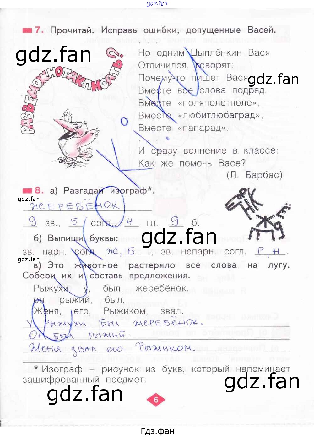 Проверка домашнего задания всегда занимает большое количество времени. На помощь приходит ГДЗ фан по Русскому языку второго класса. Здесь собраны популярные ответы на 6 (№ 7, 8) Русский язык 2 класс рабочая тетрадь Яковлева С.Г.
