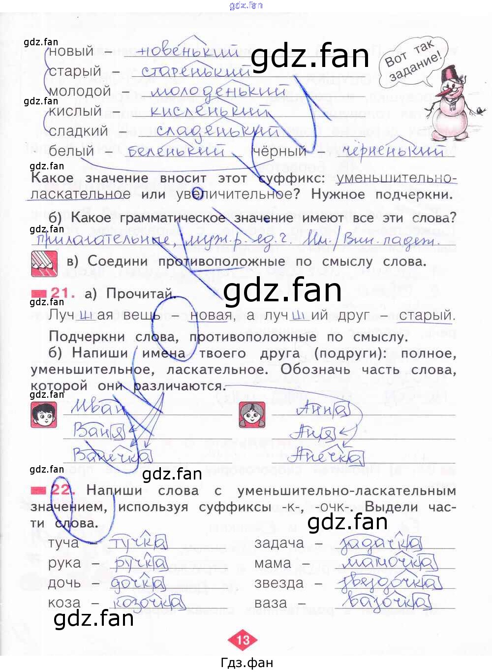 Проверка домашнего задания всегда занимает большое количество времени. На помощь приходит ГДЗ фан по Русскому языку второго класса. Здесь собраны популярные ответы на 13 (№ 21, 22) Русский язык 2 класс рабочая тетрадь Яковлева С.Г.