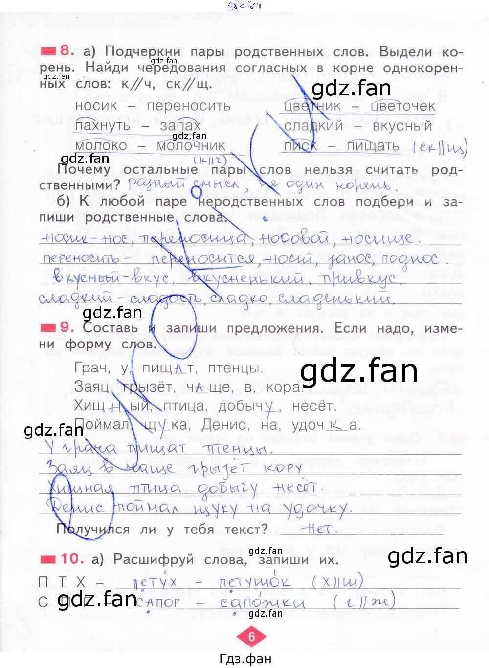 Проверка домашнего задания всегда занимает большое количество времени. На помощь приходит ГДЗ фан по Русскому языку второго класса. Здесь собраны популярные ответы на 6 (№ 8, 9, 10) Русский язык 2 класс рабочая тетрадь Яковлева С.Г.