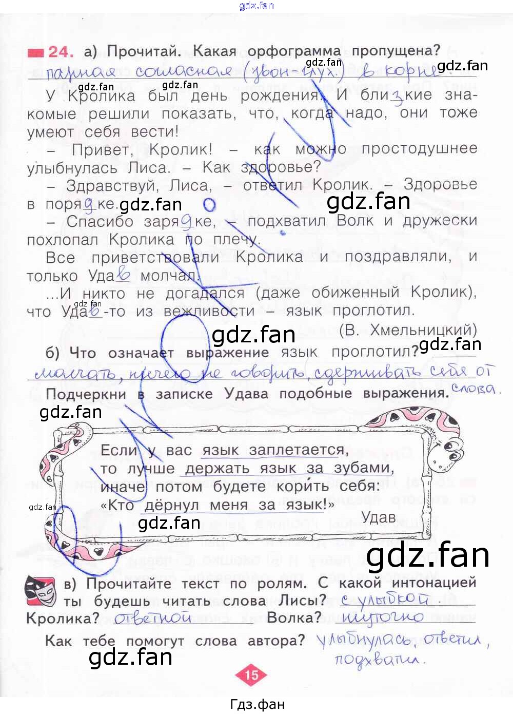 Проверка домашнего задания всегда занимает большое количество времени. На помощь приходит ГДЗ фан по Русскому языку второго класса. Здесь собраны популярные ответы на 15 (№ 24) Русский язык 2 класс рабочая тетрадь Яковлева С.Г.