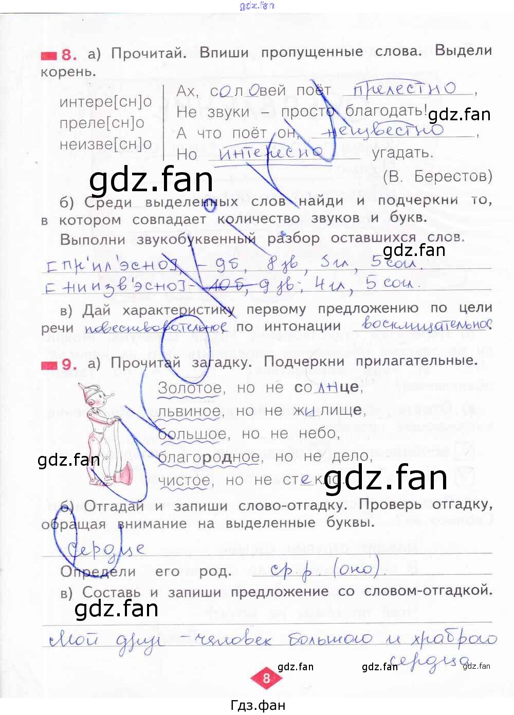 Проверка домашнего задания всегда занимает большое количество времени. На помощь приходит ГДЗ фан по Русскому языку второго класса. Здесь собраны популярные ответы на 8 (№ 8, 9) Русский язык 2 класс рабочая тетрадь Яковлева С.Г.