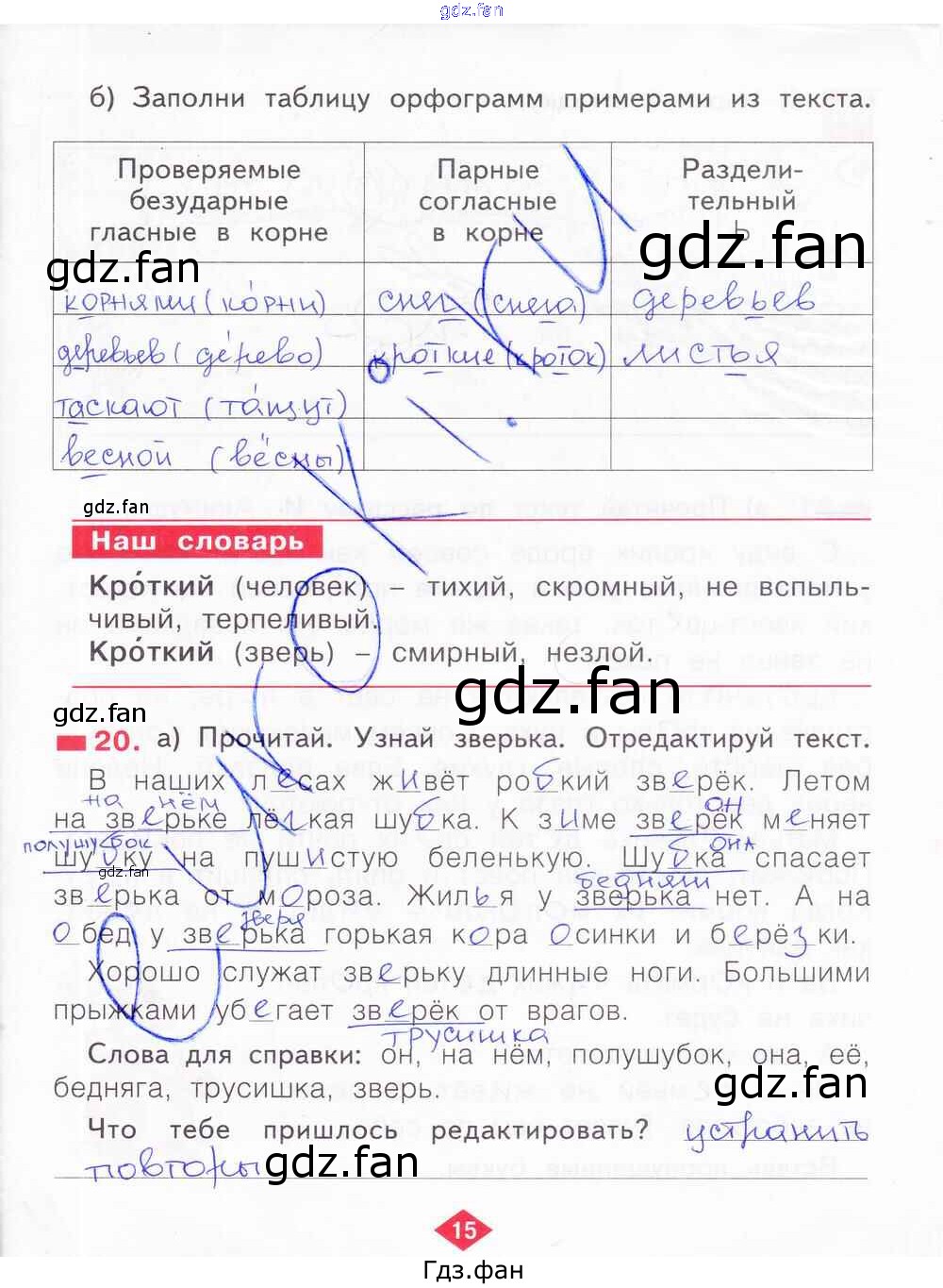 Проверка домашнего задания всегда занимает большое количество времени. На помощь приходит ГДЗ фан по Русскому языку второго класса. Здесь собраны популярные ответы на 15 (№ 20) Русский язык 2 класс рабочая тетрадь Яковлева С.Г.