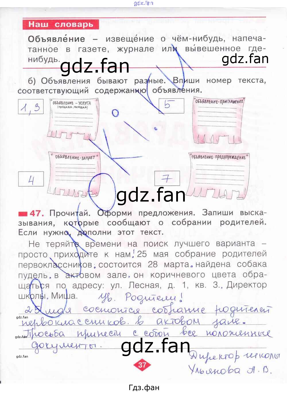 Проверка домашнего задания всегда занимает большое количество времени. На помощь приходит ГДЗ фан по Русскому языку второго класса. Здесь собраны популярные ответы на 37 (№ 47) Русский язык 2 класс рабочая тетрадь Яковлева С.Г.