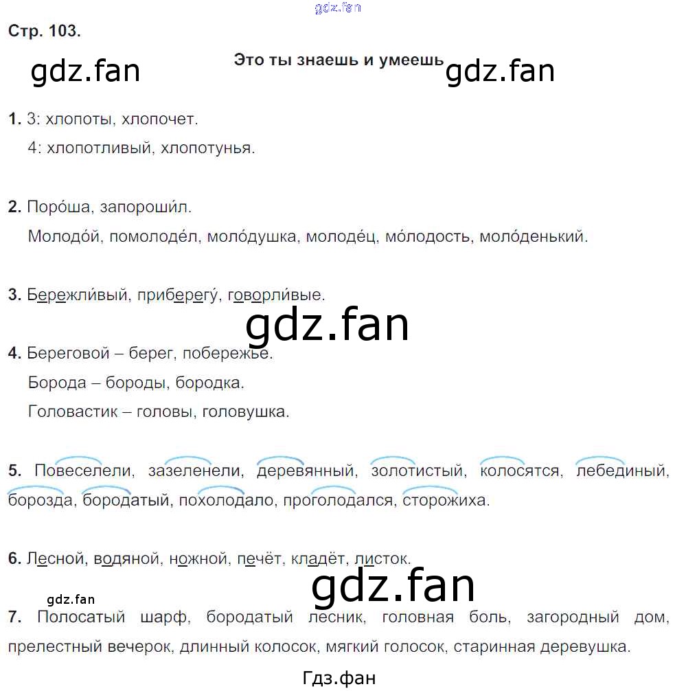Проверка домашнего задания всегда занимает большое количество времени. На помощь приходит ГДЗ фан по Русскому языку третьего класса. Здесь собраны популярные ответы на стр. 103-104 (№ 1, 2, 3, 4, 5, 6, 7) Русский язык 3 класс Бунеев Р.Н.