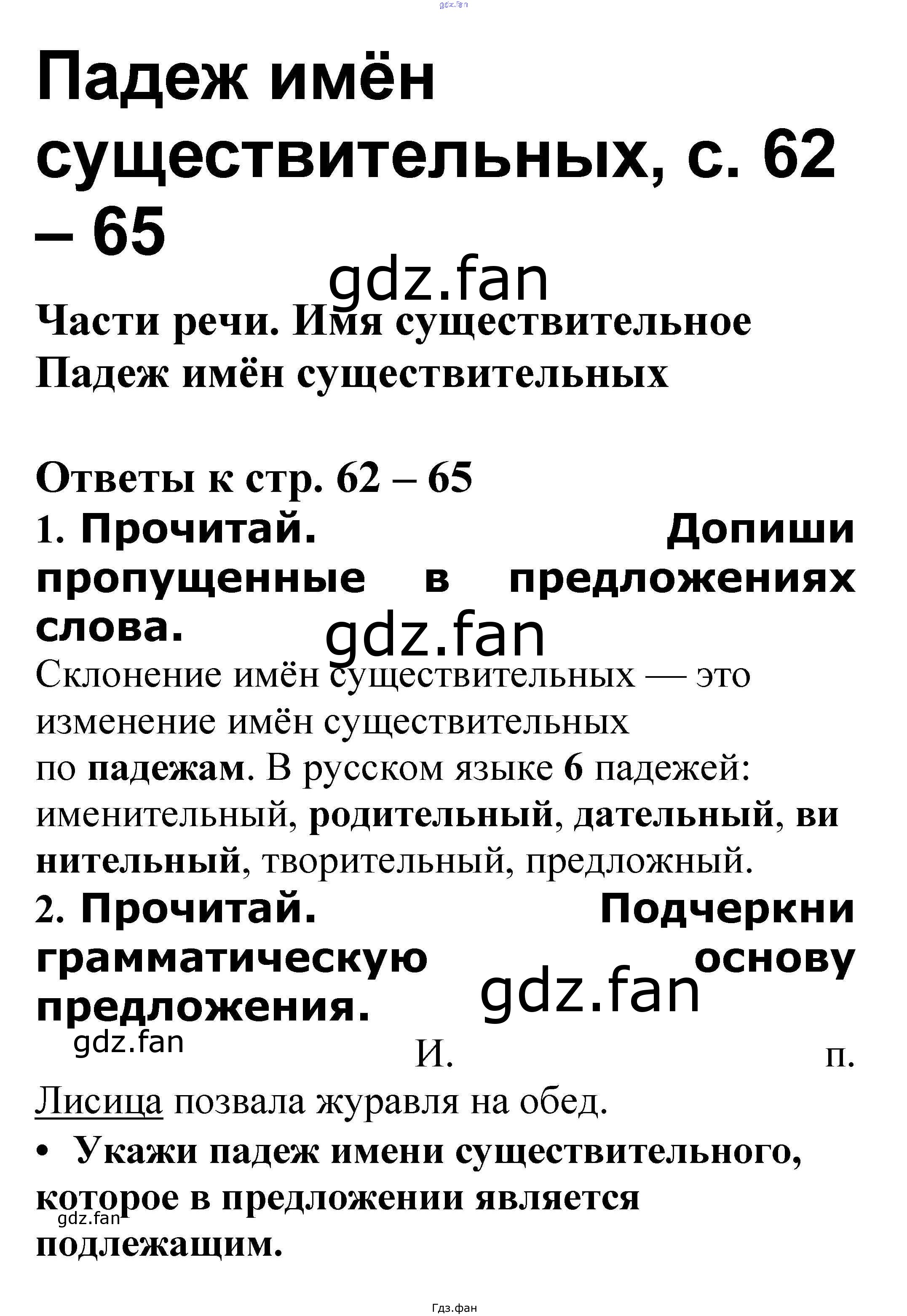 Проверка домашнего задания всегда занимает большое количество времени. На помощь приходит ГДЗ фан по Русскому языку третьего класса. Здесь собраны популярные ответы на 62-65 (Падеж имён существительных № 1, 2, 3, 4, 5, 6, 7, 8, 9, 10, 11, 12, 13. 14) Русский язык 3 класс проверочные работы Канакина В.П.