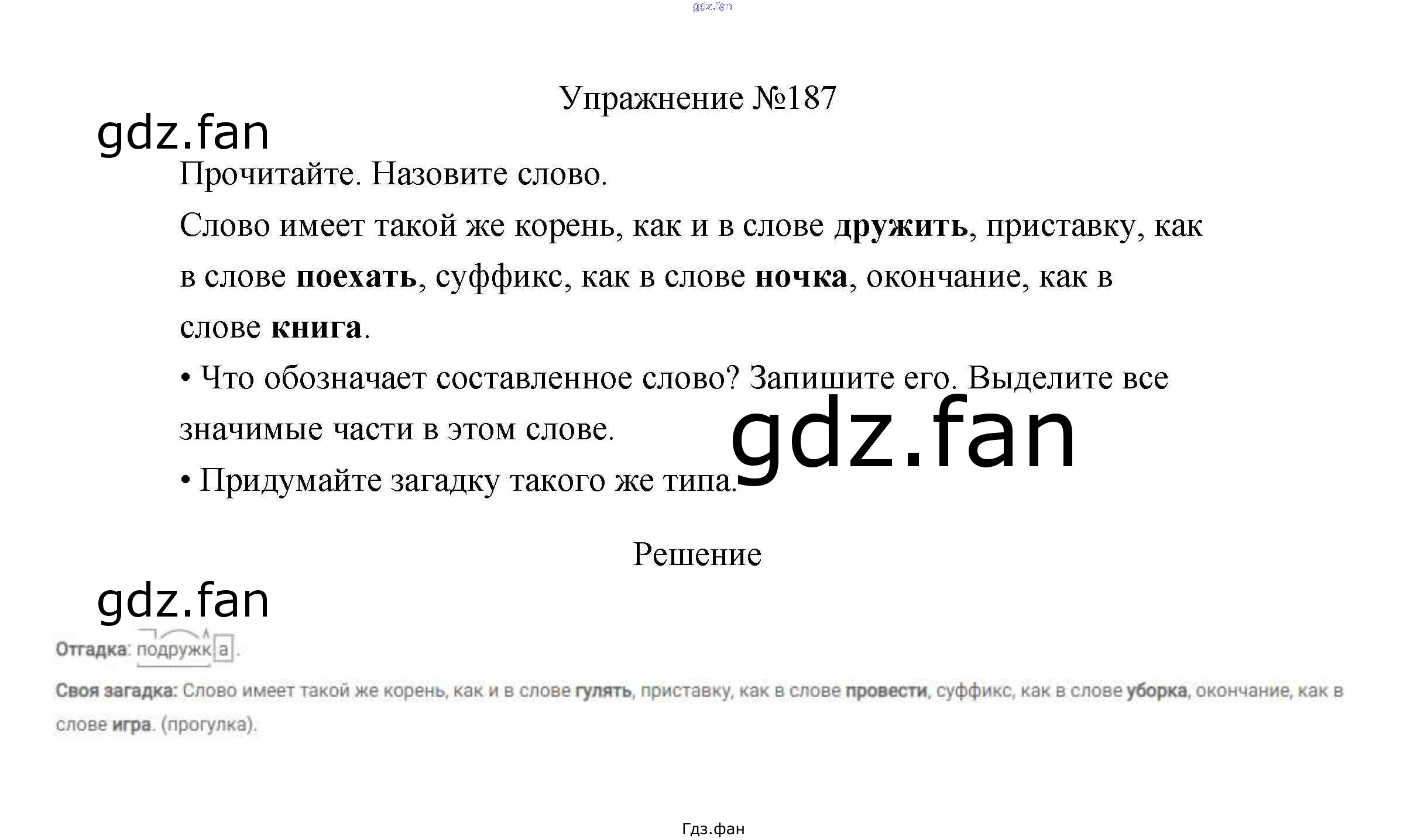 Проверка домашнего задания всегда занимает большое количество времени. На помощь приходит ГДЗ фан по Русскому языку третьего класса. Здесь собраны популярные ответы на 187 (стр. 98) Русский язык 3 класс Канакина В.П.