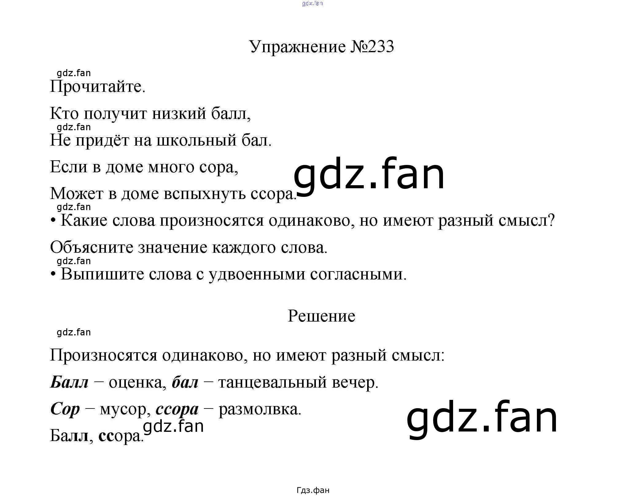 Проверка домашнего задания всегда занимает большое количество времени. На помощь приходит ГДЗ фан по Русскому языку третьего класса. Здесь собраны популярные ответы на 233 (стр. 121) Русский язык 3 класс Канакина В.П.