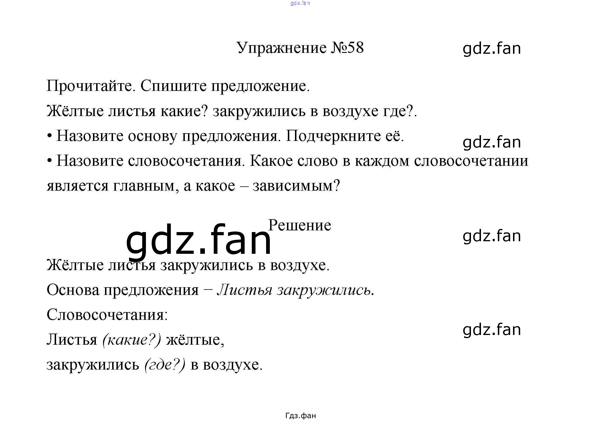Проверка домашнего задания всегда занимает большое количество времени. На помощь приходит ГДЗ фан по Русскому языку третьего класса. Здесь собраны популярные ответы на 58 (стр. 36) Русский язык 3 класс Канакина В.П.