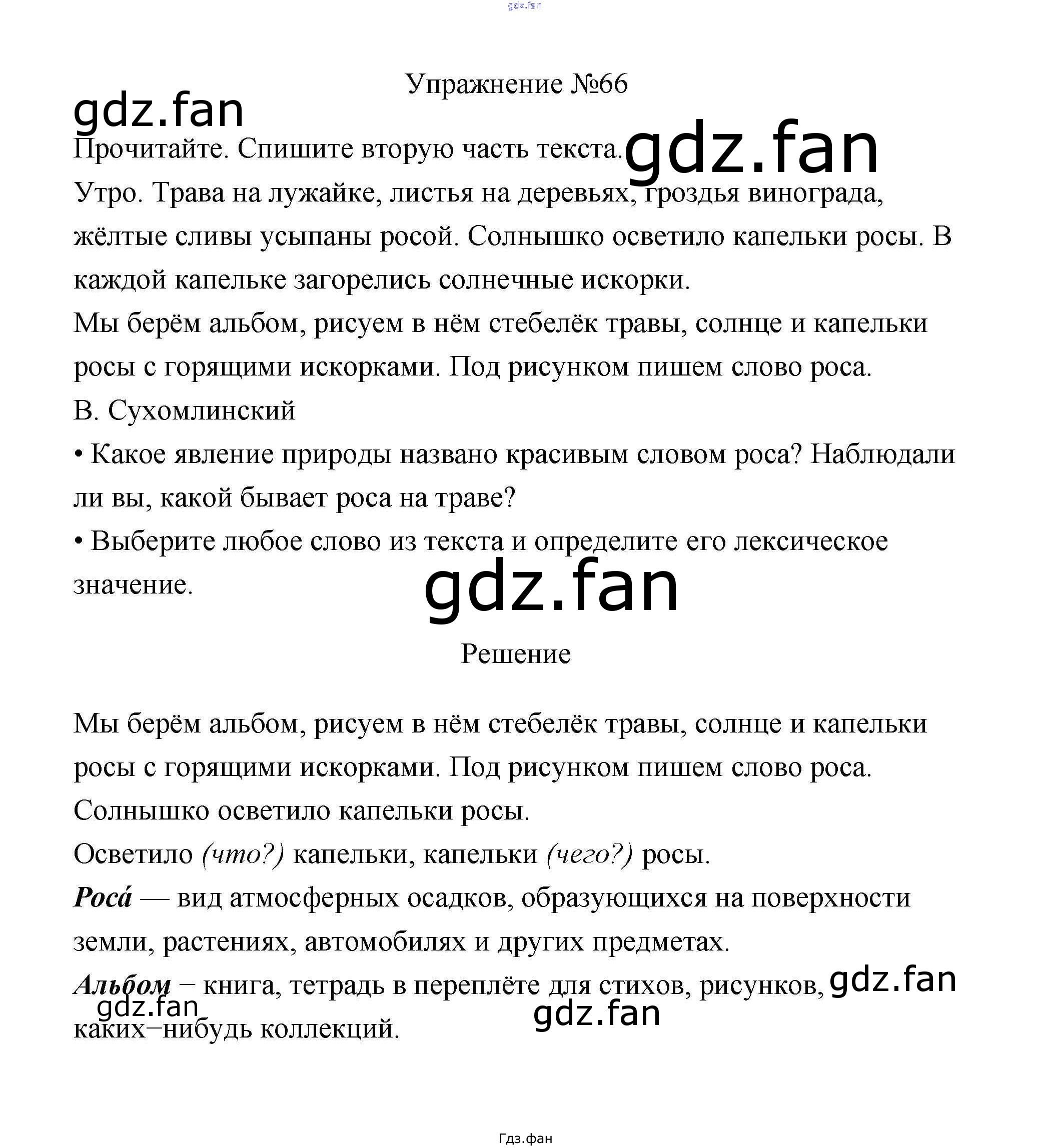 Проверка домашнего задания всегда занимает большое количество времени. На помощь приходит ГДЗ фан по Русскому языку третьего класса. Здесь собраны популярные ответы на 66 (стр. 41) Русский язык 3 класс Канакина В.П.