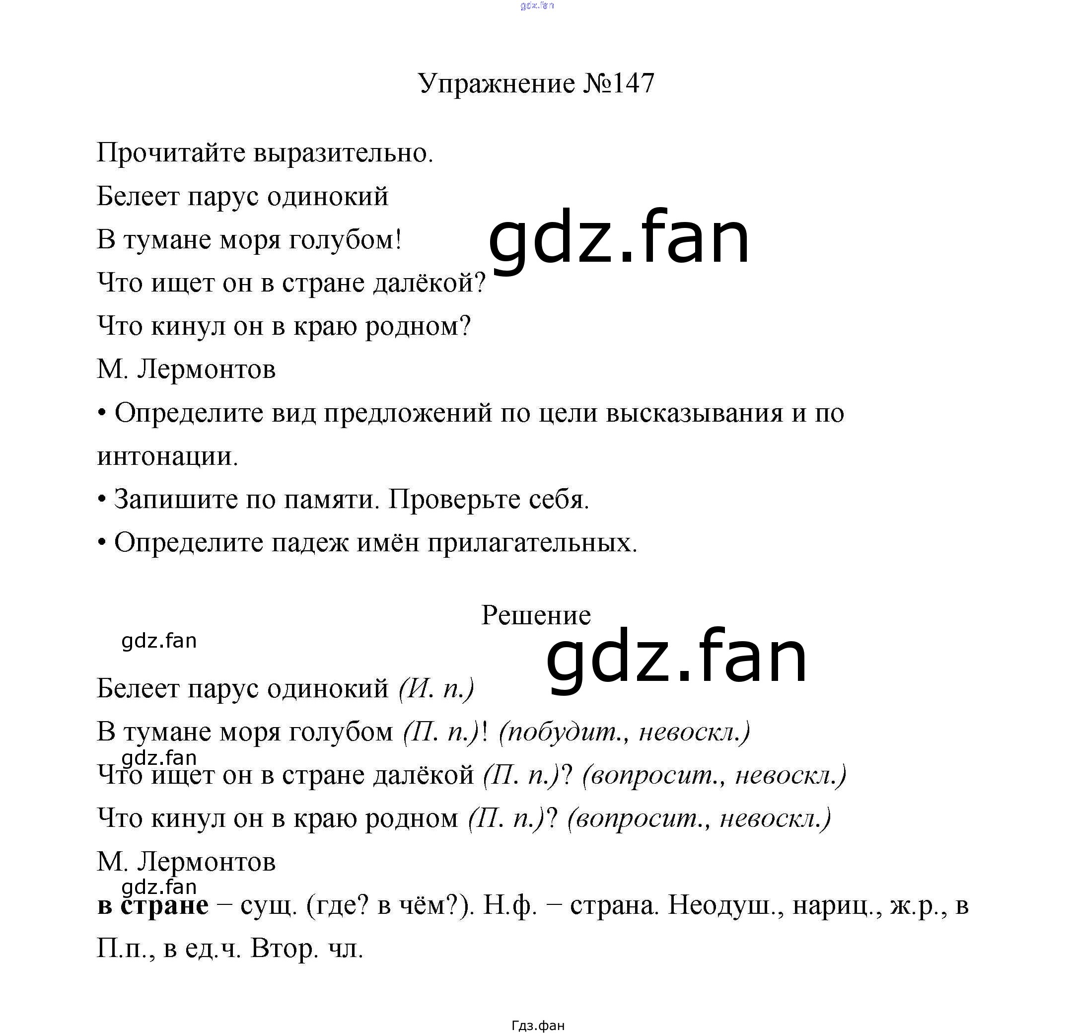 Проверка домашнего задания всегда занимает большое количество времени. На помощь приходит ГДЗ фан по Русскому языку третьего класса. Здесь собраны популярные ответы на 147 (стр. 84) Русский язык 3 класс Канакина В.П.