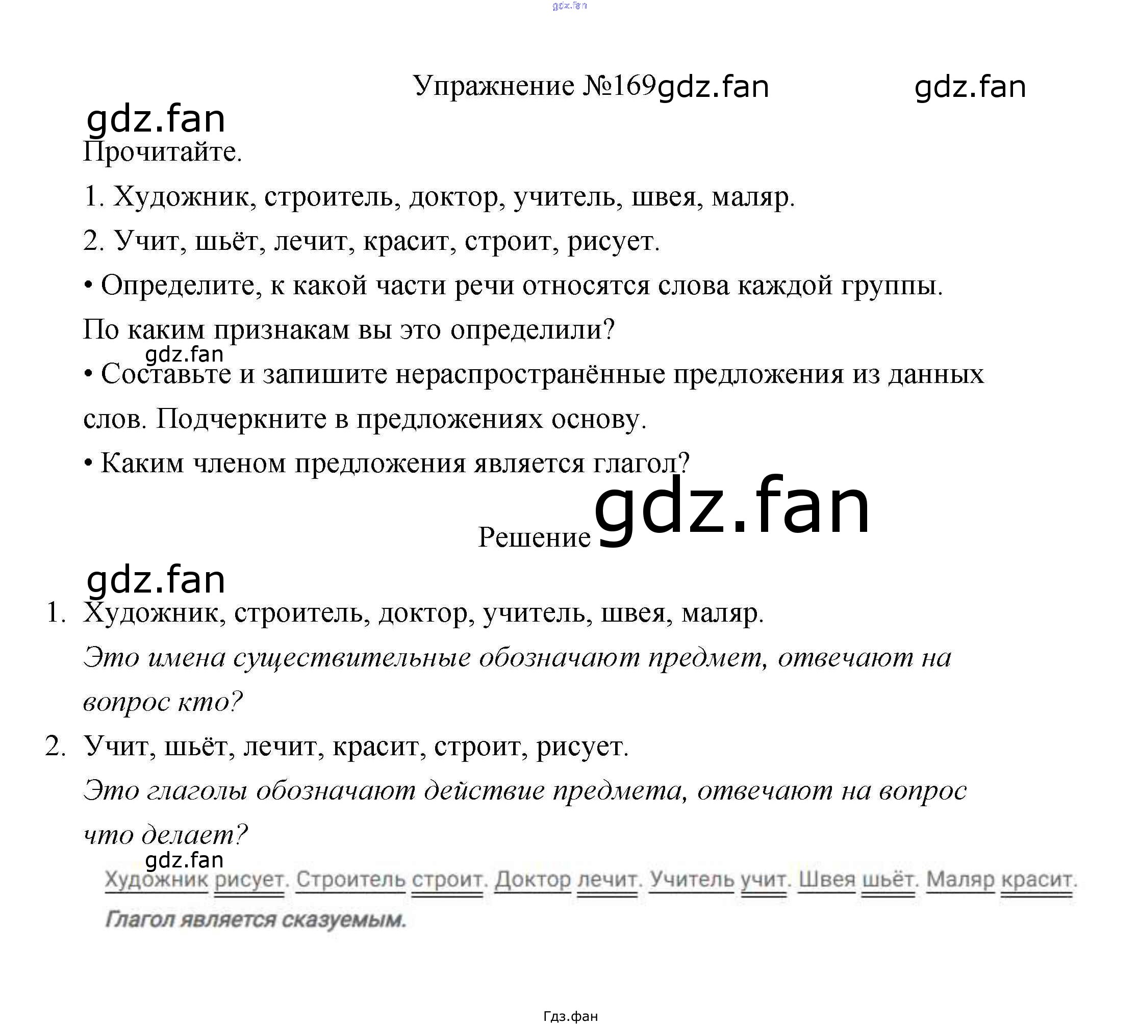 Проверка домашнего задания всегда занимает большое количество времени. На помощь приходит ГДЗ фан по Русскому языку третьего класса. Здесь собраны популярные ответы на 169 (стр. 100) Русский язык 3 класс Канакина В.П.