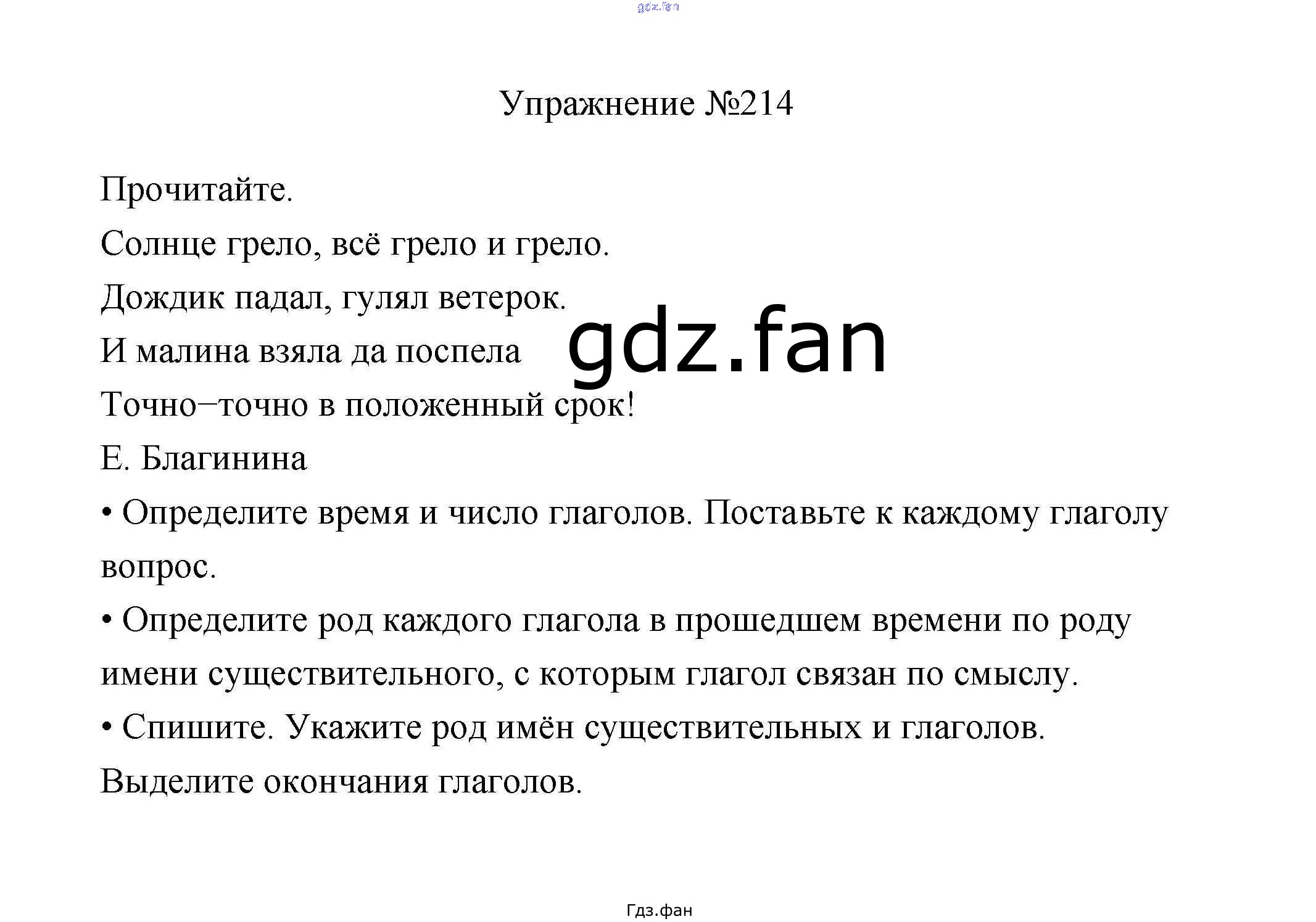 Проверка домашнего задания всегда занимает большое количество времени. На помощь приходит ГДЗ фан по Русскому языку третьего класса. Здесь собраны популярные ответы на 214 (стр. 121) Русский язык 3 класс Канакина В.П.