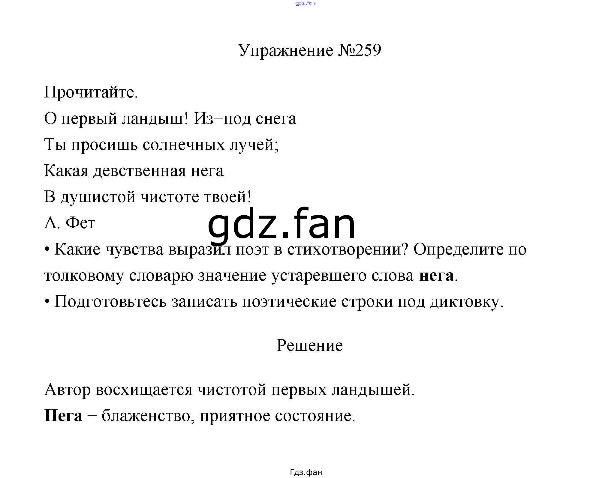 Проверка домашнего задания всегда занимает большое количество времени. На помощь приходит ГДЗ фан по Русскому языку третьего класса. Здесь собраны популярные ответы на 259 (стр. 139) Русский язык 3 класс Канакина В.П.