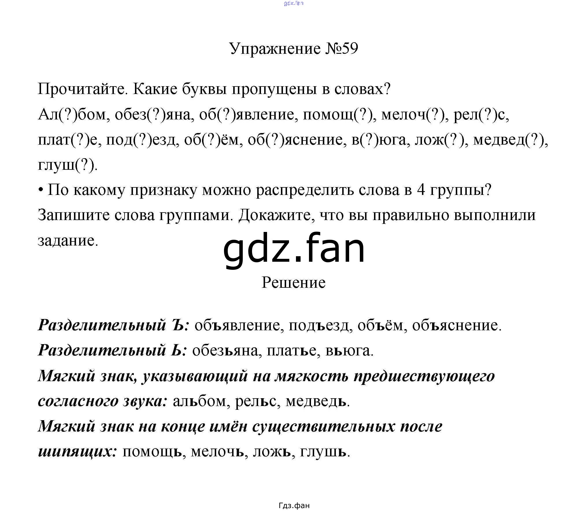 Проверка домашнего задания всегда занимает большое количество времени. На помощь приходит ГДЗ фан по Русскому языку третьего класса. Здесь собраны популярные ответы на 59 (стр. 34) Русский язык 3 класс Канакина В.П.