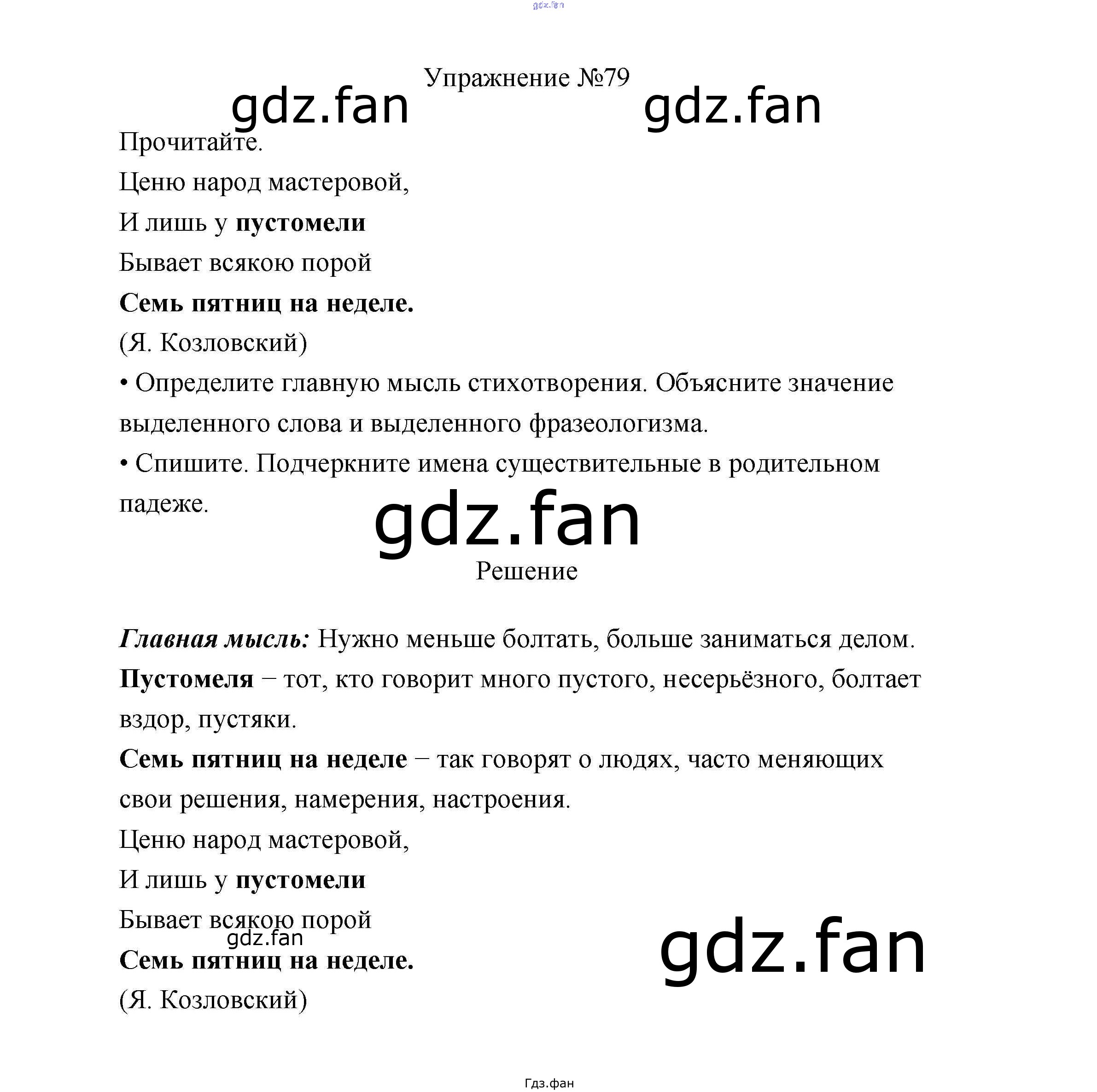 Проверка домашнего задания всегда занимает большое количество времени. На помощь приходит ГДЗ фан по Русскому языку третьего класса. Здесь собраны популярные ответы на 79 (стр. 44) Русский язык 3 класс Канакина В.П.