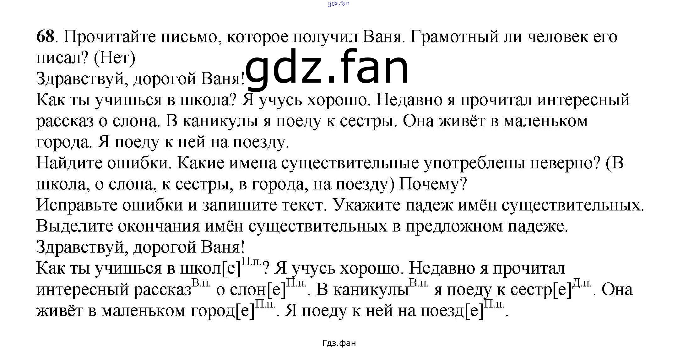 ГДЗ - онлайн ответы на 68 (стр. 37) Русский язык для 3 класса к Учебнику Перспектива Климанова, Бабушкина 2014