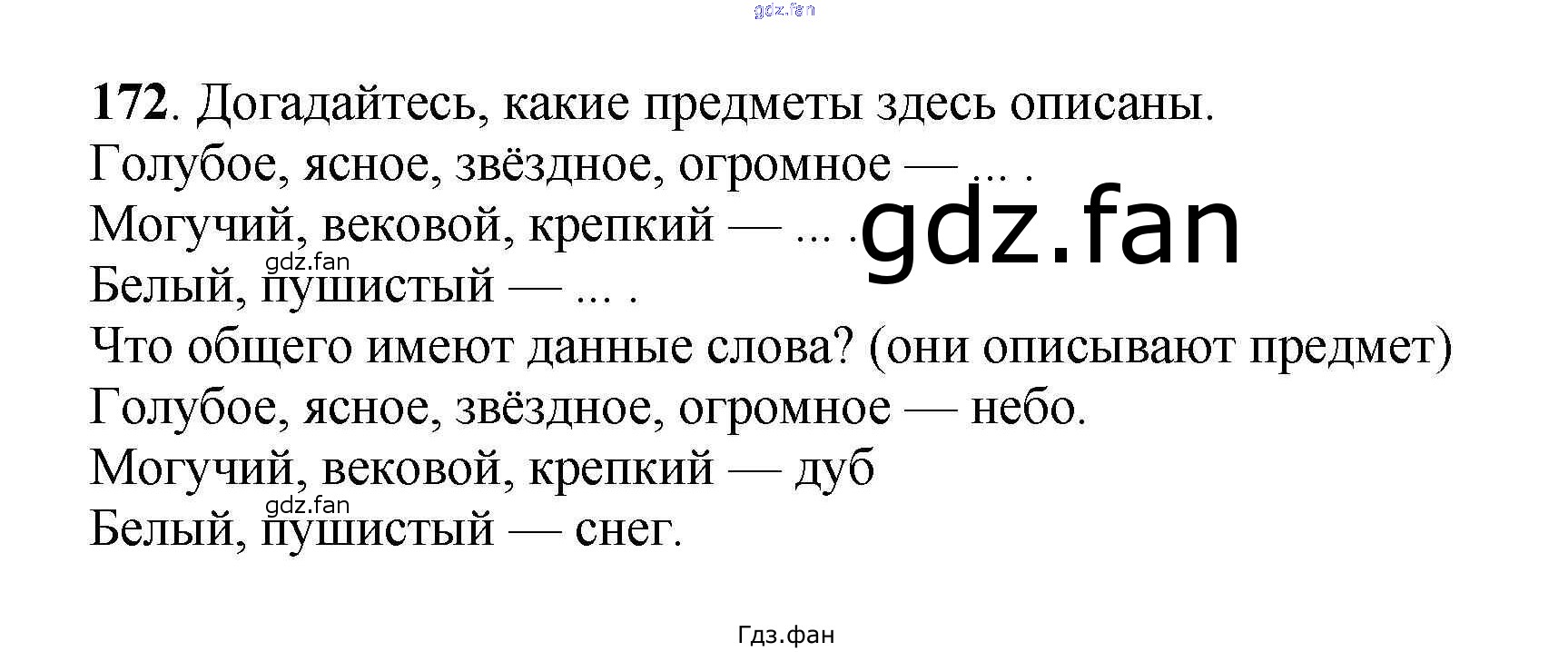Проверка домашнего задания всегда занимает большое количество времени. На помощь приходит ГДЗ фан по Русскому языку третьего класса. Здесь собраны популярные ответы на 172 (стр. 97) Русский язык 3 класс Климанова Л.Ф.