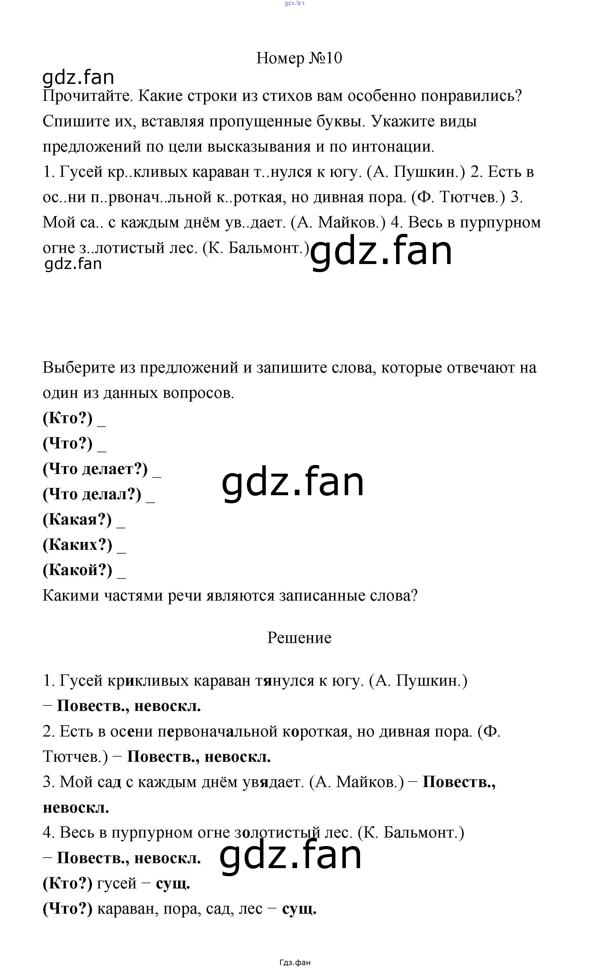 Проверка домашнего задания всегда занимает большое количество времени. На помощь приходит ГДЗ фан по Русскому языку третьего класса. Здесь собраны популярные ответы на 10 (стр. 10) Русский язык 3 класс рабочая тетрадь Климанова Л.Ф.