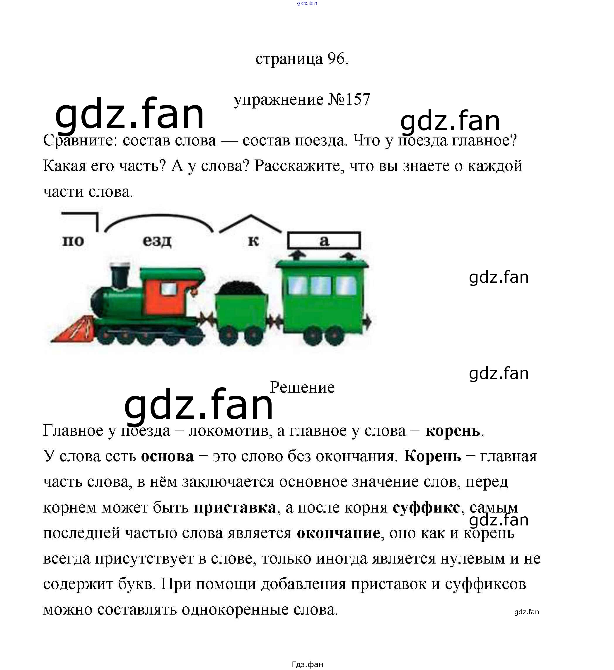 Проверка домашнего задания всегда занимает большое количество времени. На помощь приходит ГДЗ фан по Русскому языку третьего класса. Здесь собраны популярные ответы на 157 (стр. 96) Русский язык 3 класс Климанова Л.Ф.