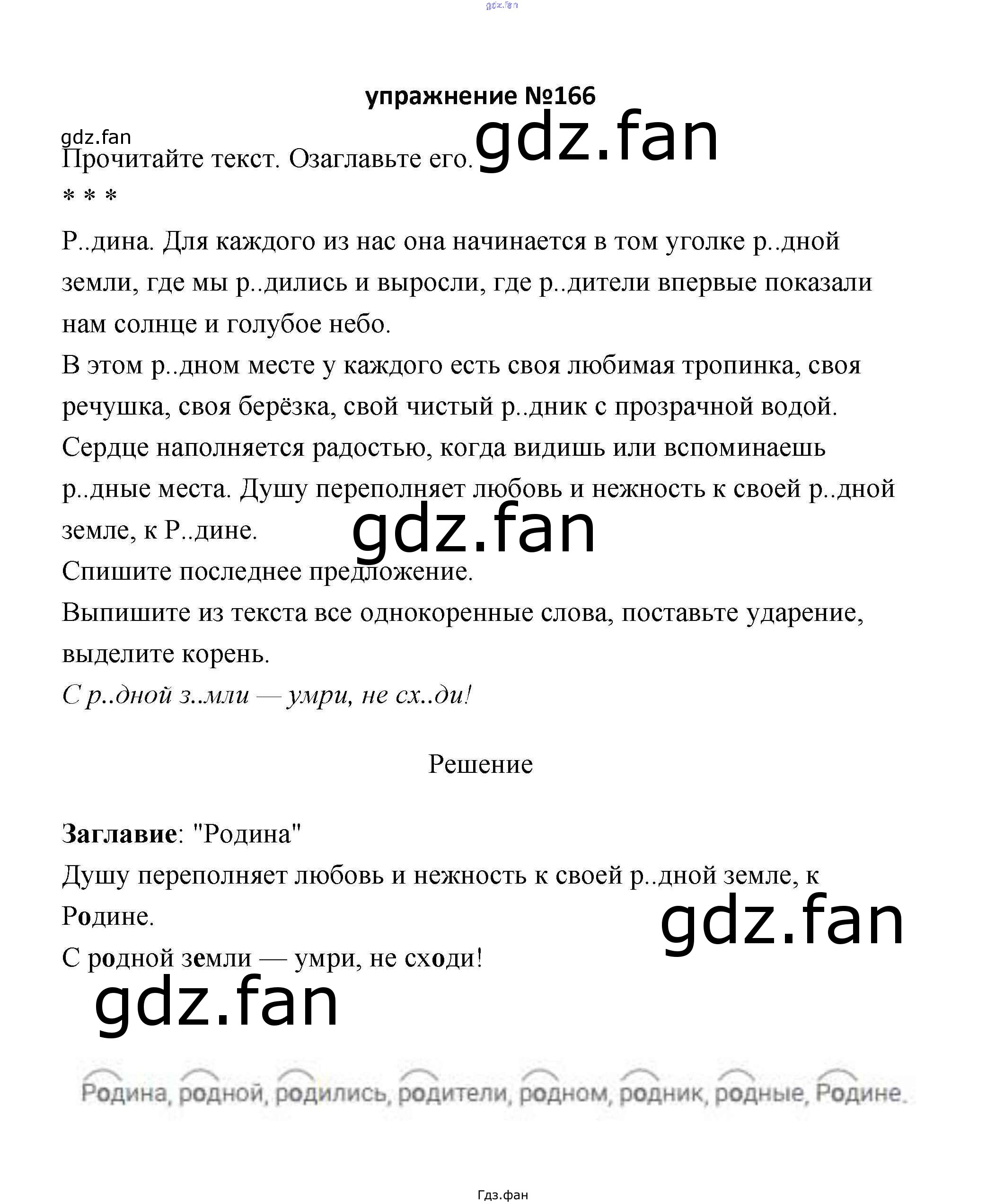 Проверка домашнего задания всегда занимает большое количество времени. На помощь приходит ГДЗ фан по Русскому языку третьего класса. Здесь собраны популярные ответы на 166 (стр. 100) Русский язык 3 класс Климанова Л.Ф.
