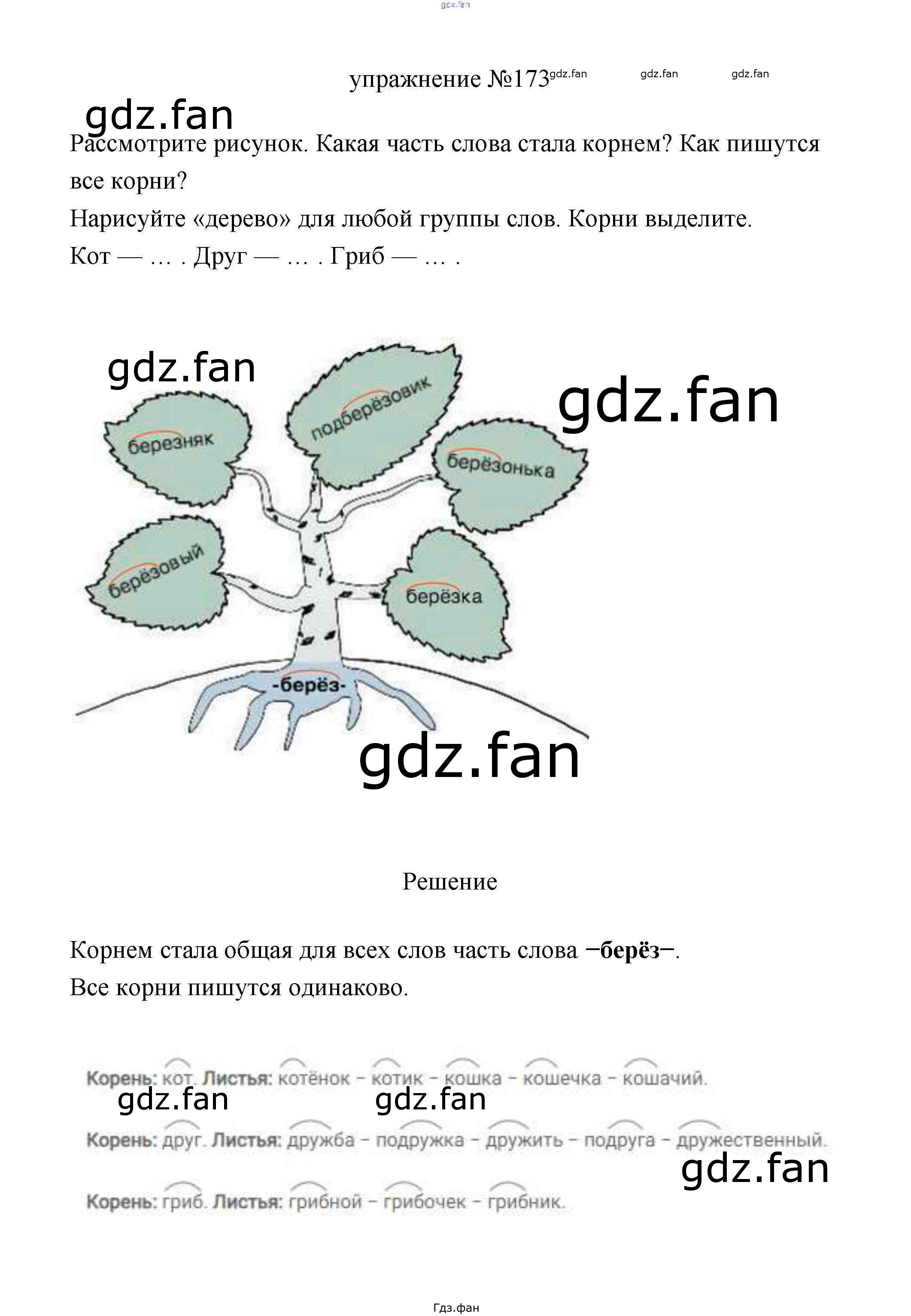 Проверка домашнего задания всегда занимает большое количество времени. На помощь приходит ГДЗ фан по Русскому языку третьего класса. Здесь собраны популярные ответы на 173 (стр. 103) Русский язык 3 класс Климанова Л.Ф.