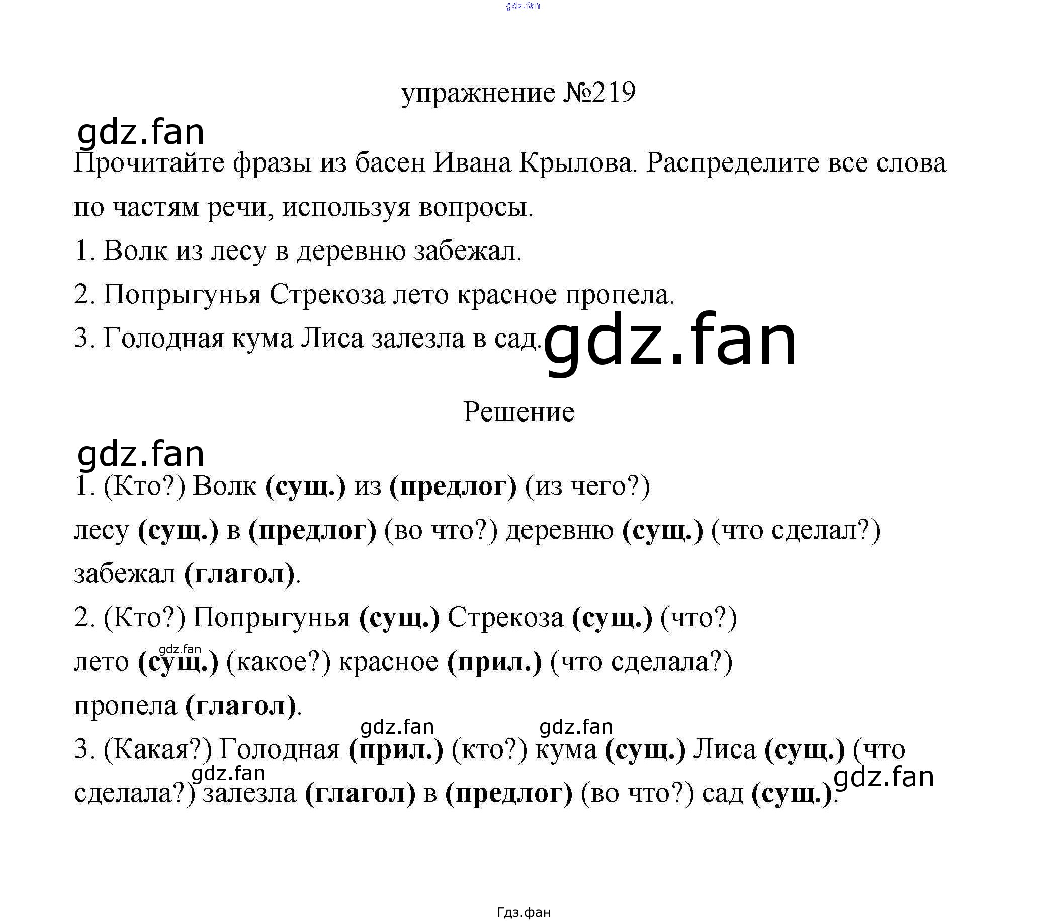 Проверка домашнего задания всегда занимает большое количество времени. На помощь приходит ГДЗ фан по Русскому языку третьего класса. Здесь собраны популярные ответы на 219 (стр. 125) Русский язык 3 класс Климанова Л.Ф.