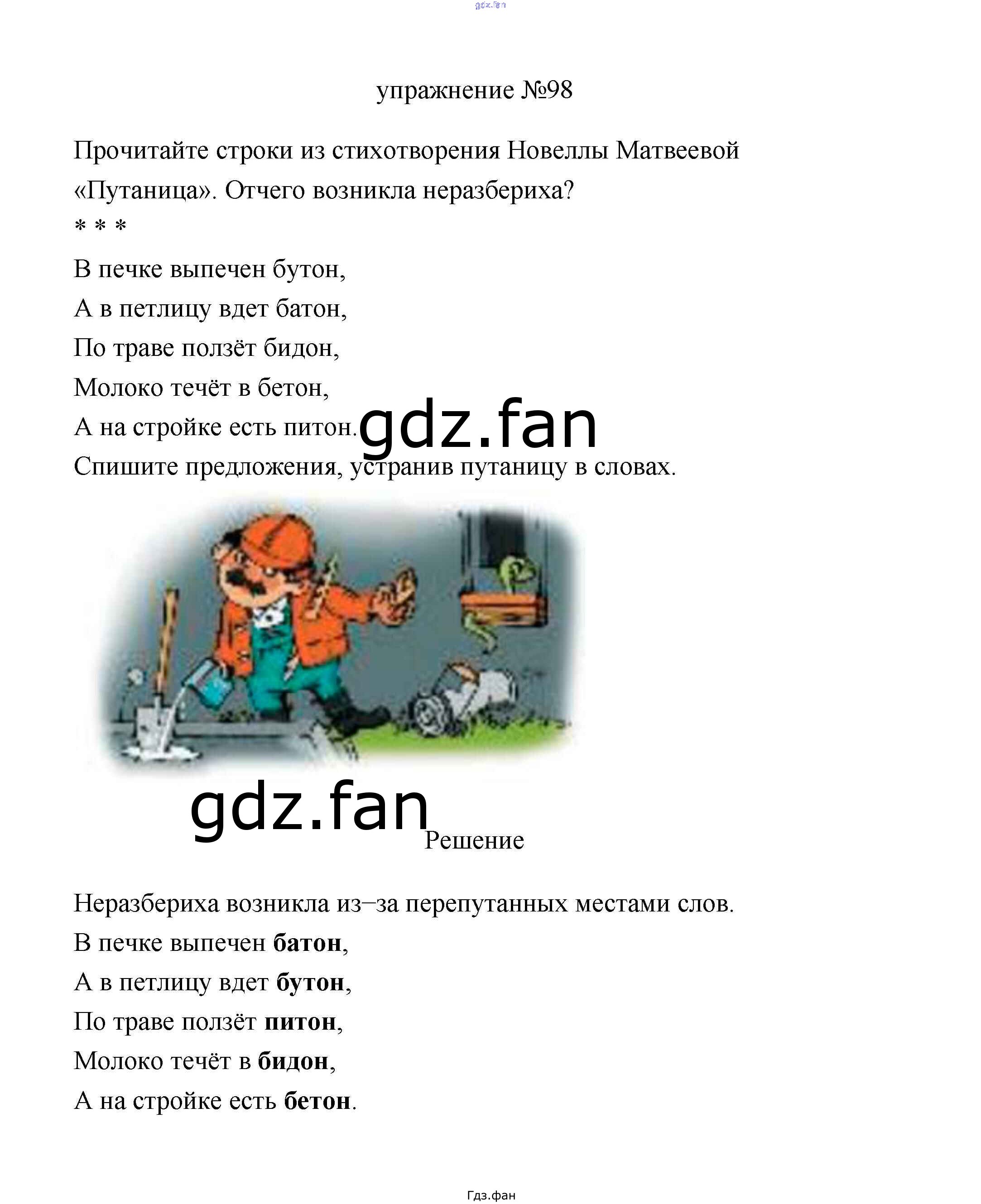 Проверка домашнего задания всегда занимает большое количество времени. На помощь приходит ГДЗ фан по Русскому языку третьего класса. Здесь собраны популярные ответы на 98 (стр. 63) Русский язык 3 класс Климанова Л.Ф.