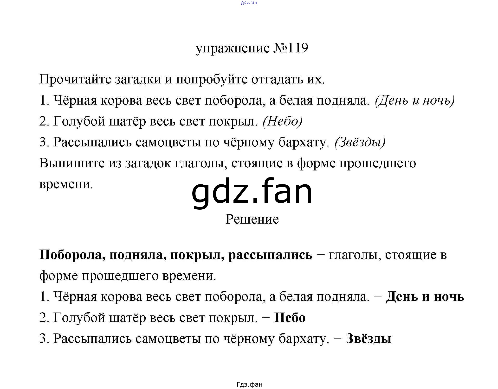 Проверка домашнего задания всегда занимает большое количество времени. На помощь приходит ГДЗ фан по Русскому языку третьего класса. Здесь собраны популярные ответы на 119 (стр. 70) Русский язык 3 класс Климанова Л.Ф.