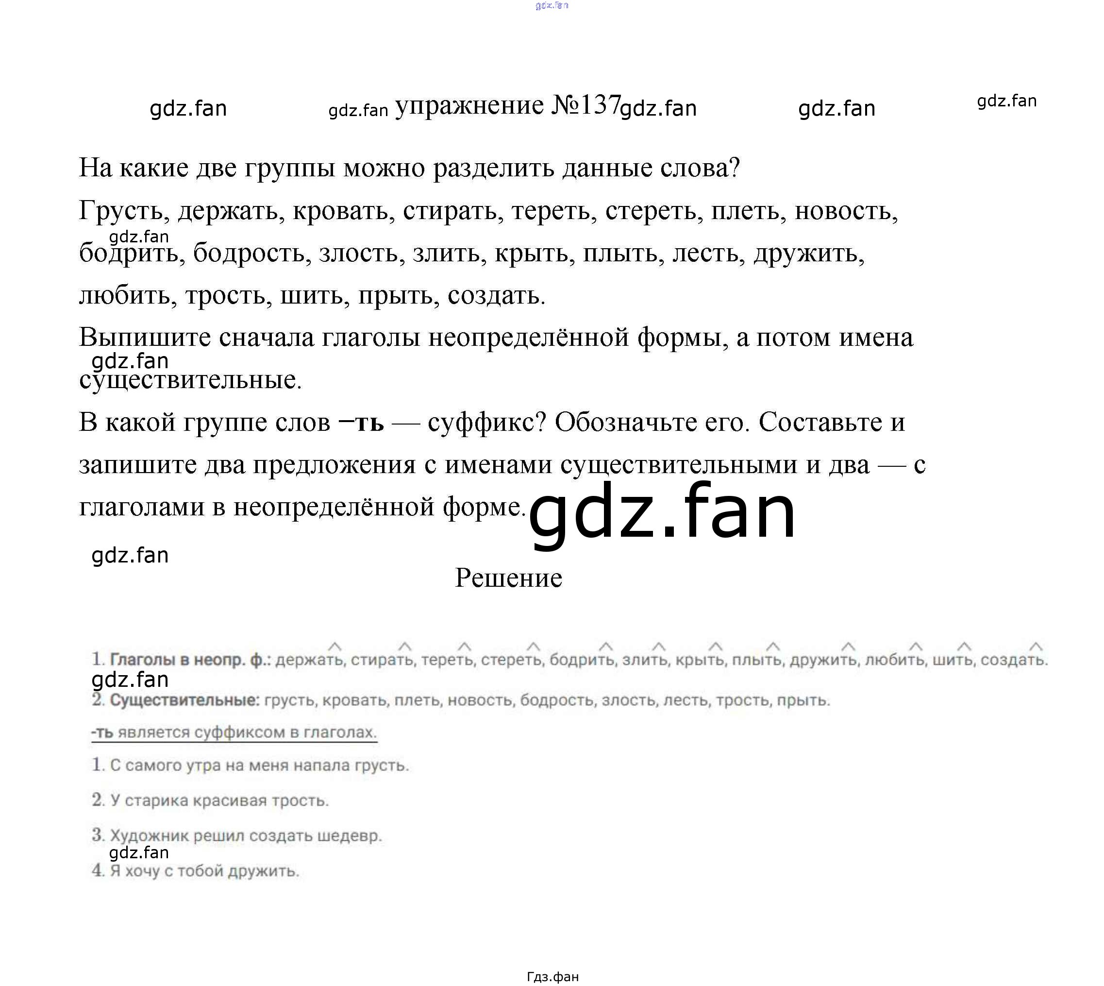 Проверка домашнего задания всегда занимает большое количество времени. На помощь приходит ГДЗ фан по Русскому языку третьего класса. Здесь собраны популярные ответы на 137 (стр. 79) Русский язык 3 класс Климанова Л.Ф.